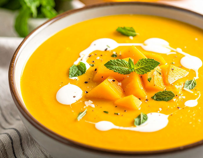 Golden Gazpacho with Minted Cream