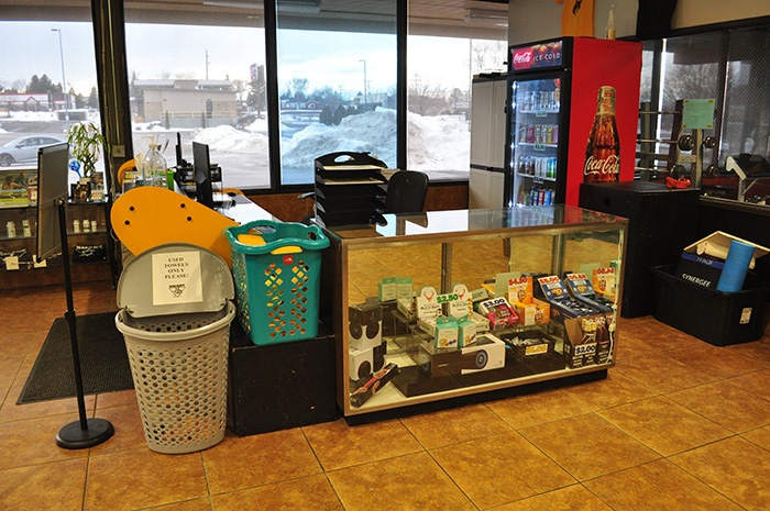 - Retail area with energy and pre-workout drinks, protein bars, cookies, shakes and vitamins