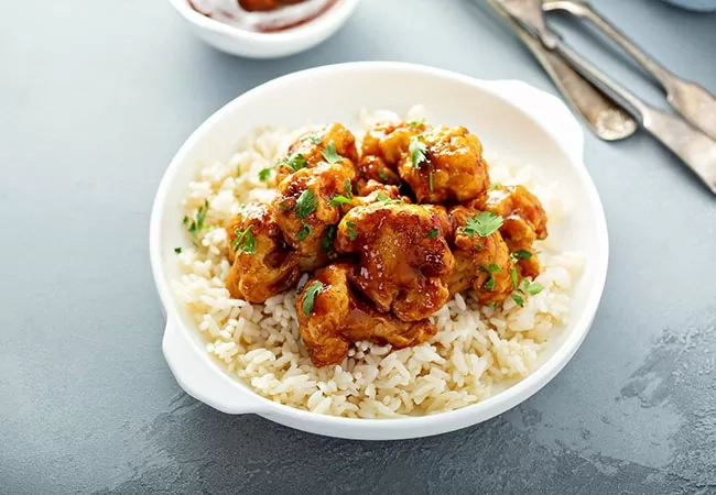 Easy and healthy Baked Sweet & Sour Cauliflower is a delicious twist on classic sweet & sour chicken or pork and it’s baked instead of fried. You won’t miss meat in this lightened up classic!